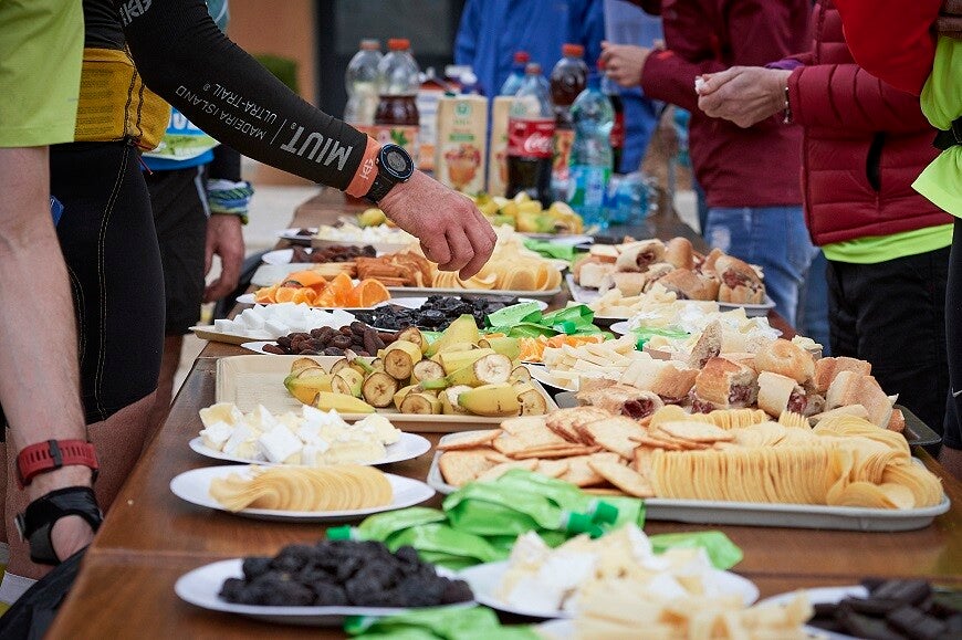 Lors de la randonnée, inutile de charger l’estomac. Des sucres rapides sont un bon choix (fruits secs, chocolats, bananes, barres énergétiques…).